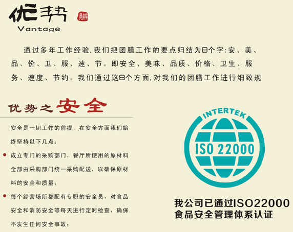 您現(xiàn)在的位置:福州中團(tuán)餐飲管理有限公司 >> 服務(wù)優(yōu)勢 >> 服務(wù)優(yōu)勢